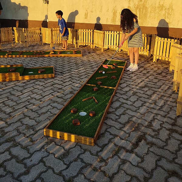 Montamos e disponibilizamos estrutura e equipamento de minigolfe profissional para sua festa ou evento. Você poderá contar com instrutores especializados para auxiliar seus convidados no momento da diversão! Também, atendemos escolas e shoppings. Clique aqui e faça seu orçamento!